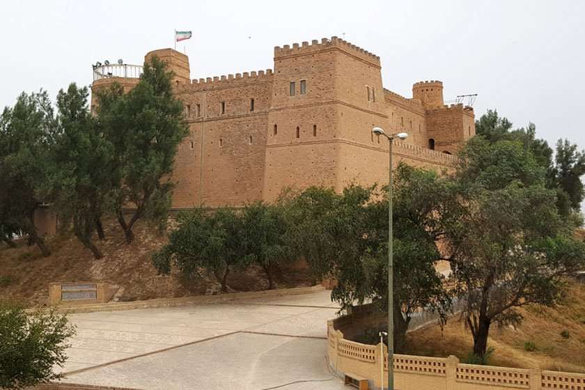 اگر از بالا به این قلعه نگاه کنید همانند ذوزنقهای میباشد که دورتادور آن به راهرویی احاطه شده است. این قلعه دارای دو حیاط و سه ورودی میباشد. در بدو ورود به این قلعه طاق های رومی، تزئیناتی آجری، ورودیهای قوسی شکل و آجرهایی که منقش به کتیبه هستند را ببینید. این کتیبهها به زبان میخی همانند زیگورات چغازنبیل است بنابراین بسیاری این قلعه را نماینده کوچکی از چغازنبیل میدانند. وجود آجرهای بسیار در نمای قلعه شوش باعث شده این قلعه را به قلعه آجر معروف شود. از آنجایی که هر قلعهای برای دیدهبانی نیاز به برج دارد، قلعه شوش هم از این قاعده مستثنی نیست و دارای چندین برج است. برجی در وسط حیاط قرار گرفته که معروف به برج شمالی است، همچنین برج دیگری در قسمت غربی قرار گرفته که در گذشته دارای کاربری کبوترخانه بوده است.