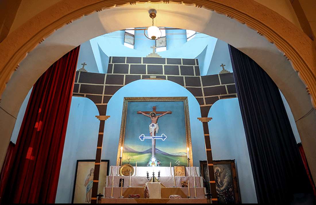 پلان ساختمان کلیسا فرمی تقریبا ذوزنقهای شکل دارد. این ساختمان دارای دو گنبد مخروطی شکل است که در راس هر دوی این مخروطها صلیب قرار گرفته است و از ویژگیهای بارز و منحصر به فرد این ساختمان به شمار میرود. گنبد بزرگتر در وسط ساختمان قرار دارد و صلیب نصب شده در بالای آن از جنس آهن است، در حاشیه زیر گنبد ردیفی از کاشیهای سفید رنگ قرار دارد که منقش به گلی سبزرنگ است.