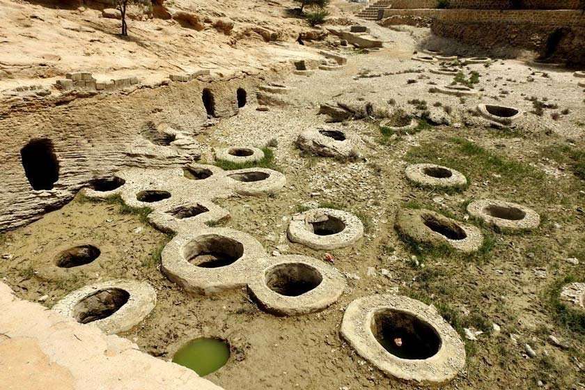 چاههای تلا به نوبه خود یکی از جالبترین دستساختههای بشر هستند که تاریخچه ساخت آنها به پس از اسلام برمیگردد و امروزه توجه بسیاری از گردشگران را به خود معطوف کردهاند. قدمت این چاهها را حدود ۴۰۰ سال تخمین میزنند. چاههای تلا و دو برج دیدهبانی بالای آنها در واقع آثار تاریخی و باستانی مربوط به قرن ۱۷ میلادی هستند. برجهای دیدبانی در بالای چاههای تلا برای نگهبانی ساخته شدهاند.