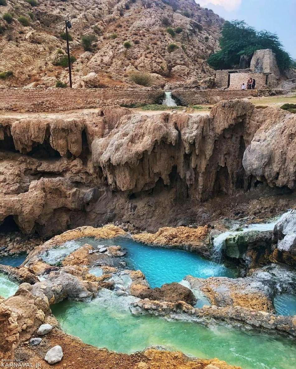 چشمه گنو در درهای واقع شده که شمال تا جنوب آن را ارتفاعات آهکی کوه گنو پوشانده است. انارون، تنگ باغ، کهنو، چاهو، پشتنگ، هوبیر، پشت بنگرو، رمر، سرچربه، پرکوه، مردو و خرگو از جمله چشمههای این منطقه هستند. در صبحهای سرد بخار آب چشمه با دمایی در حدود ۴۱ درجه سانتیگراد، با هوای ۲۰ درجهای محیط برخورد میکند و تا ارتفاع یک متری آب را بخاری ناپایدار تشکیل میدهد که جلوه زیبایی به محیط میبخشد.