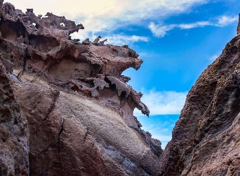 جذابیت دره مجسمهها فقط به تندیسهای طبیعی آن ختم نمیشود بلکه در انتهای مسیر، فرد را با روی دیگر خود شگفتزده خواهد کرد. در طول دره مسیر باریکتر میشود و ناگهان به پرتگاهی با حدود ۴۰ متر ارتفاع میرسد. منظره دره تماما رو به دریای فیروزهای خلیج فارس است و صحنهای بینظیری از آن را به نمایش میگذارد.