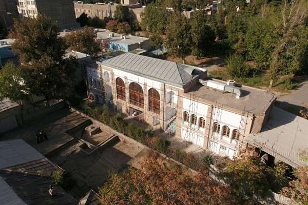 این ساختمان از آجر و خشت با تیر‌ها و مهاربندهای چوبی ساخته شده است. تالارها و فضاهای داخلی از انواع تزئینات، شامل نقاشی‌های دیواری بزرگ و آینه‌کاری‌ها با سقف چوبی و همچنین تزئینات گچی اندود شده و نمای بیرونی ساختمان دارای قاب‌های آجری، جرزها اندود گچ و خاک و اندکی نقش و نگار دارد.