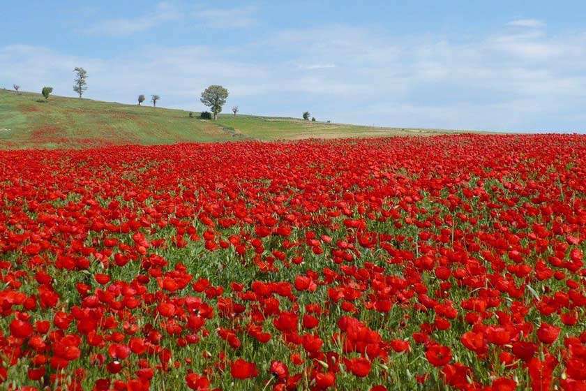 حدود سه ماه پس از رویش گلهای شقایق در دشت کالپوش، اما این بار این دشت زردپوش میشود. به بار نشستن گلهای آفتابگردان در ماه شهریور این فصل از سال را نیز به فرصتی عالی برای بازدید از دشت کالپوش تبدیل میکند. آفتابگردان از محصولات کشاورزی مهم دشت کالپوش است و اگر در حوالی شهریور به این منطقه سفر کنید از دیدن تعداد زیاد مزارع گل آفتابگردان شگفتزده خواهید شد.