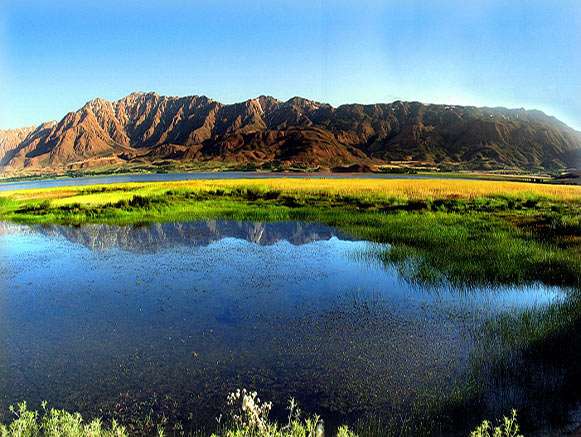 انعکاس چشمانداز زیبای طبیعت پیرامون تالاب در آب و رقص و آواز پرندگان بر سطح تالاب بسیار زیباست. در بهار در یک سوی تالاب، کوههای سر به فلک کشیده و سپیدپوش کلار و در سوی دیگر، درختان و چمنزاری وسیع و سرسبز خودنمایی میکنند. تصویر آسمان آبی و تکه ابرهای گذرا بر صیقل زیبای آب و رقص کوههای کلار در بازتاب آن، زیبایی بی حد و حصری به این تالاب میبخشد. این منطقه در تابستان محل ییلاق عشایر بختیاری ست که تماشای زندگی آرام و باصفایشان به اندازه تماشای زیباییهای طبیعی چغاخور جذاب و دلگرم کننده است.