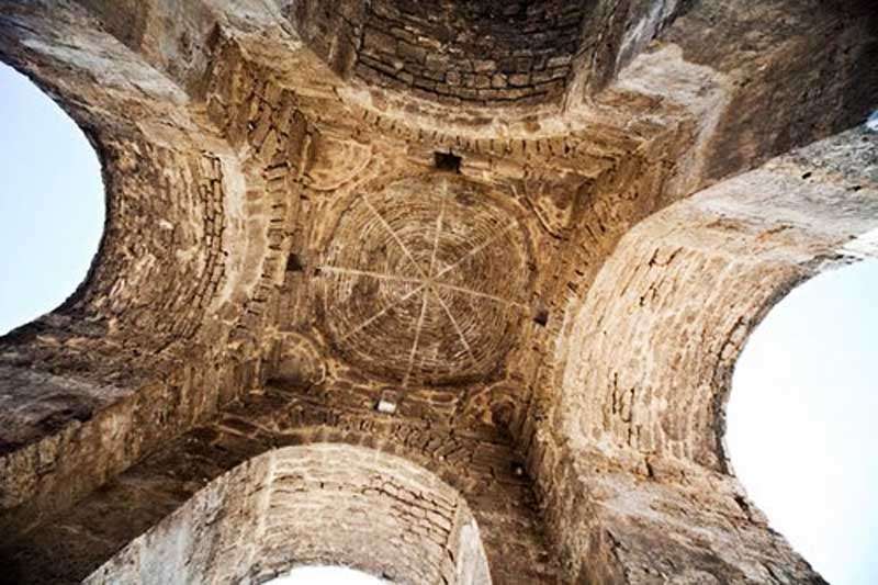 پایهها در این نوع بناها، دیوارهایی با ضخامت زیاد و عرض کم هستند و به نحوی متصل شدهاند که زاویهی میانی آنها قائمه است. در دو طرف آنها ورودی قرار گرفته است. به این نوع دیوارها در گذشته جرز میگفتند. سقف ورودیها نیز از نوع طاق منحنی (قوس) است.