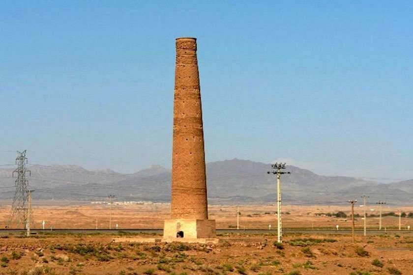 این اثر در تاریخ ۱۵ دی ۱۳۱۰ با شماره ثبت ۷۷ بهعنوان یکی از آثار ملی ایران به ثبت رسیده است. ارتفاع آن به ۳۸ متر میرسد و در بالای آن دو رشته کتیبه کوفی و تزئینات لوزی شکل دیده میشود.