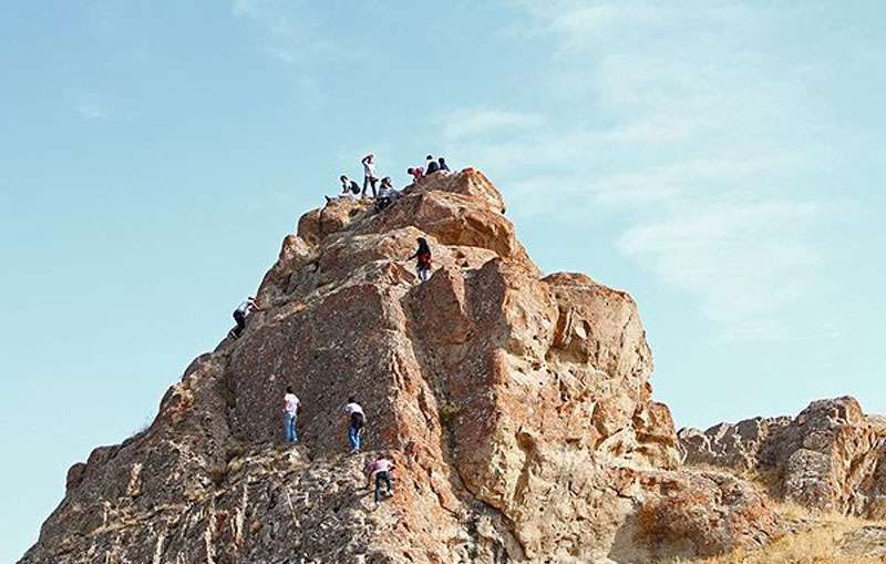 از بقایای قلعه میتوان به دو صخره بزرگ در دو سوی شرق و غرب آن که احتمالا برای دیدبانی استفاده میشد، حوضچههای حفرشده در داخل سنگها که برای ذخیره آب به کار میرفت و تعدادی گودالهای کوچک استوانهای اشاره کرد که محل استقرار مشعل بودند.