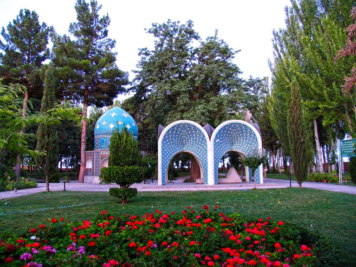 سازندگان آرامگاه کمالالملک نیز چند کارگر نیشابوری بودند که در مراسم رونمایی بنا از آنان قدردانی شدفرم کلی بنا به همراه تزیینات و کاشیکاریها، شباهت و هارمونی زیادی به آرامگاه شیخ عطار دارد بهطوری که در بدو ورود به باغ و در نگاه اول همه تصور میکنند که این دو بنا، عضوی از یک بنا هستند. در آرامگاه کمال الملک اوج خلاقیت معماری در استفاده از عناصر معماری سنتی ایرانی در تلفیقی جدید و موزون دیده میشود.